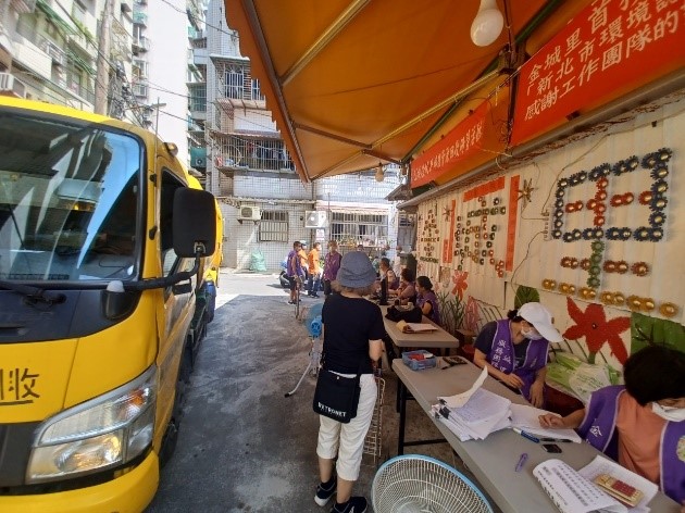 土城區金城里黃金資收站成立於108年6月,資收地點位於土城區明峰街28巷2號,於每月第2、4週四早上08:00-10:00進行資收,成立之初每月平均資收量約為1.9公噸,現每月平均資收量達到5公噸,里民資源回收的情形相當良好。