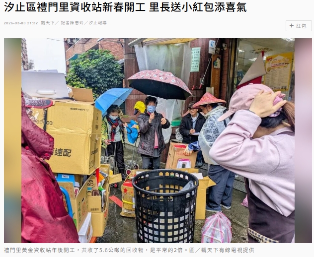 2026/03/03 汐止區禮門里資收站新春開工 里長送小紅包添喜氣